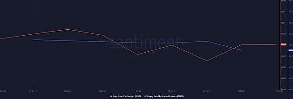 SHIB的交易所供应量在前几天下降后略有增加。此外,其供应量由下降的顶级地址持有。