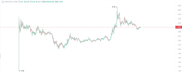 AEVO 代币在过去 7 天内上涨了 24% 以上,价格达到 3.05 美元。虽然 AEVO 在上市当天就创下了 4.46 美元的历史新高,但目前仍比其 ATH 低 31.69%。