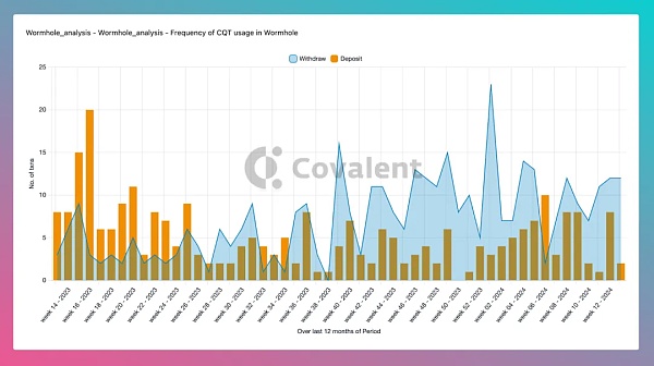 在过去 12 个月中,CQT 在 Wormhole 上的使用频率