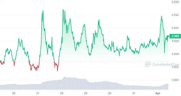自去年推出以来,Axelar 引起了加密社区的关注。这种关注源于其从已建立的项目中夺取市场份额的能力。此外,该平台还致力于通过其协议套件、工具和 API 促进无缝跨链通信。截至撰写本文时,AXL 的市值超过 12 亿美元,当前价格为 2.06 美元。