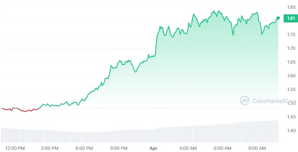 Jupiter 代币在市场上经历了显着的波动。目前价格为 1.80 美元,今天达到历史新高 1.83 美元。这种飙升表明了进一步增长的潜力,因为该代币已经突破了 1.81 美元的第二个阻力位,表明强劲的上涨趋势,并可能吸引更多投资者的关注。