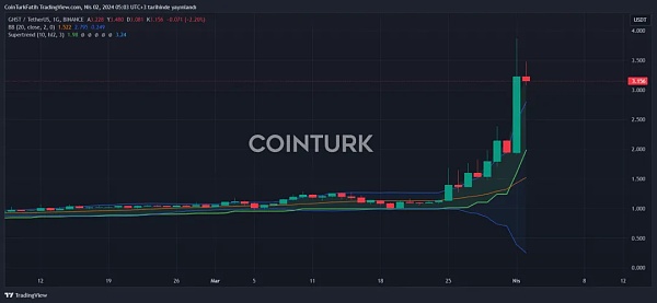 截至币安交易所撰写本文时,当天涨幅最大的山寨币是 GHST 币。24小时内价格上涨了64%。连续7天的上涨,价格上涨了238%。但现在多头在 3.46 美元的价格被拒绝,他们开始将代币压低。