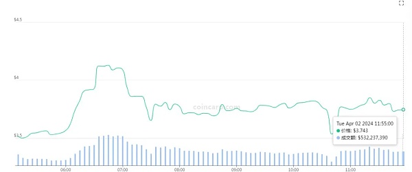 Core DAO(CORE)的最新价格为3.75美元,24小时内的交易量达到533,495,533美元。在过去的24小时内,CORE的价格上涨了38.8%。
