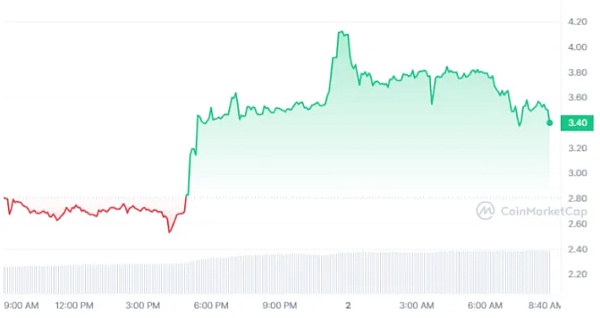 Core 的原生代币 CORE 大幅上涨,最近触及 3.68 美元的 52 周新高。该代币单日上涨 36.3 美元。这次飙升是在 3 月第四周开始的一段恢复期之后发生的,当时价格从 0.534 美元的支撑位反弹。短短两周内,该代币就上涨了 547%,交易价格在 3.5 美元左右。