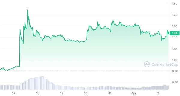 Core 的原生代币 CORE 大幅上涨,最近触及 3.68 美元的 52 周新高。该代币单日上涨 36.3 美元。这次飙升是在 3 月第四周开始的一段恢复期之后发生的,当时价格从 0.534 美元的支撑位反弹。短短两周内,该代币就上涨了 547%,交易价格在 3.5 美元左右。