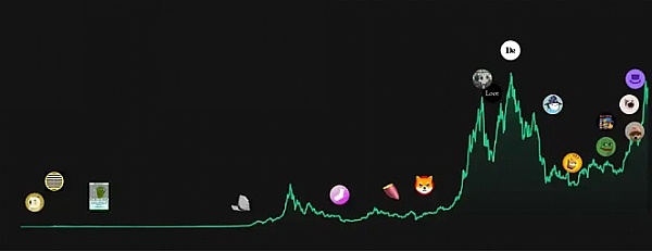低价即 Meme:从最早的山寨币开始,用户就喜欢投机那种低「价格」(由于供应量大)的代币。这其中存在一种心理诱惑力,即如果一个看似微不足道的代币达到 1 美元,它可能会让持有者一夜之间变成百万富翁。因此,价格本身就是一个 Meme。