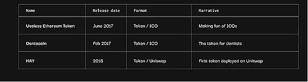 其中一个例子是于 2017 年 6 月发布的Useless Ethereum Token,它嘲笑了 ICO 的概念,并在 ICO 中筹集了 310 ETH。