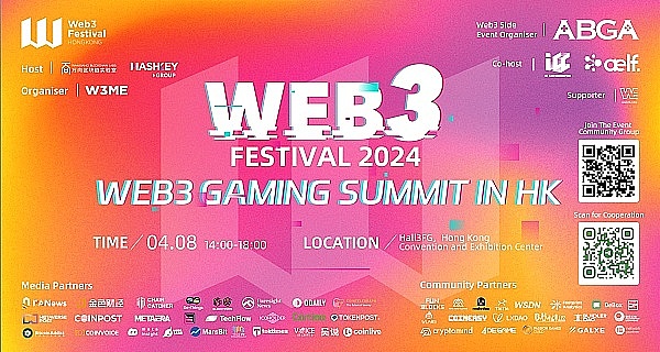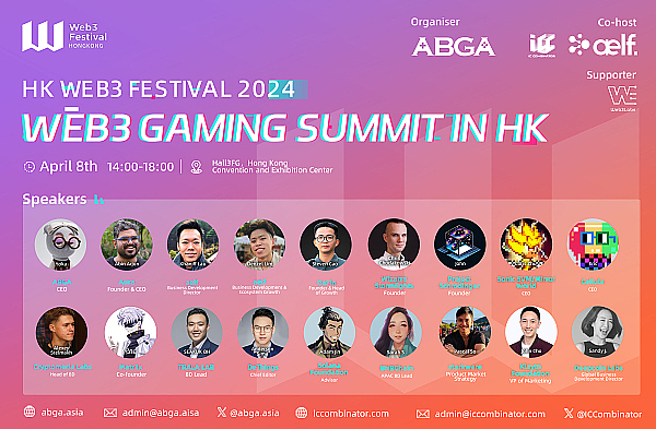 由ABGA主办,ICC及aelf承办,Web3Labs支持的Web3 Gaming Summit in Hong Kong将于2024年4月8日下午2点至6点(UTC+8)作为香港Web3嘉年华官方游戏分会场在香港会议展览中心3楼隆重举办。