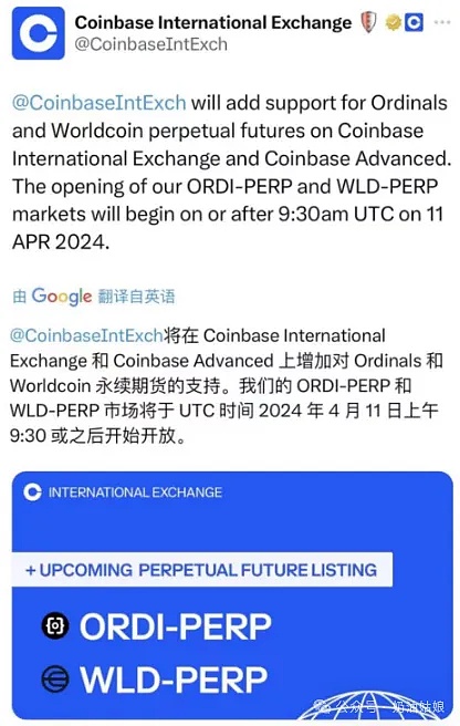 ORDI龙头再掀狂涨 4月11日上线COINBASE 会到达100吗?
