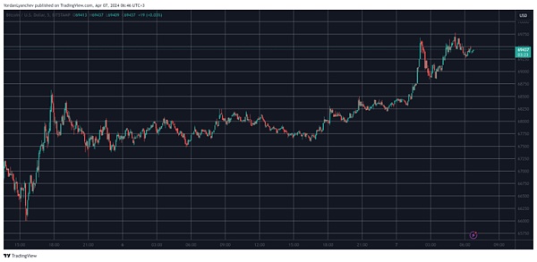 尽管如此,加密货币未能突破令人垂涎的 70,000 美元水平,至少目前如此,但仍处于 69,000 美元以上。