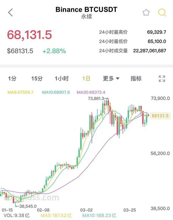 近日,比特币再次上演“大涨大跌”的行情。4月2日,比特币遭遇大规模抛售,价格一度跌破65000美元/枚,随后震荡调整快速反弹,目前,比特币再度站上68000美元/枚。