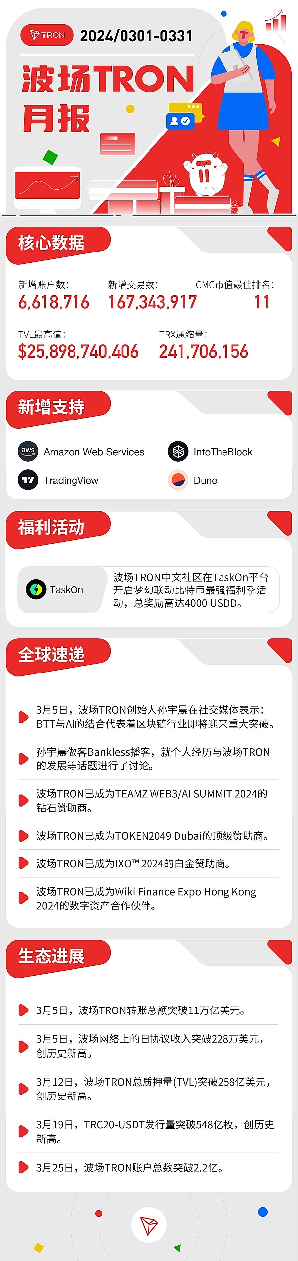 波场TRON月报新鲜出炉,一起来看看3月波场TRON都有哪些亮眼表现。