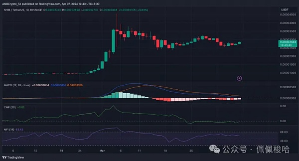 SHIB 的买盘压力很大,但指标看起来看跌。