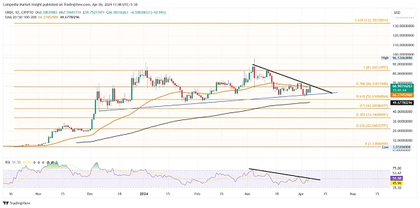 随着今年 4 月份市场范围内的潜在复苏,ORDI 价格可能在未来一周达到 100 美元的心理关口。