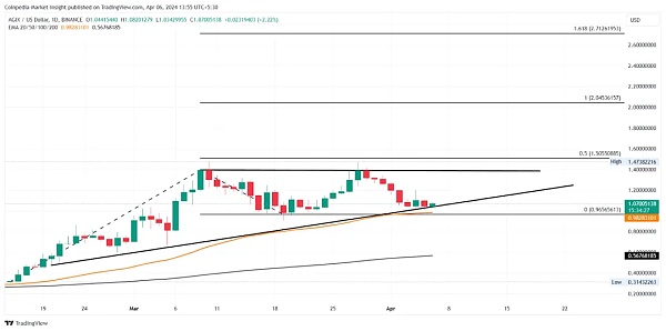 此外,根据基于趋势的斐波那契水平,1.50 美元的 50% 斐波那契水平是下一个阻力位。潜在的逆转反弹可能会导致上方阻力位的突破。 乐观的是,AI 代币可能会大幅反弹并达到 2 美元大关。