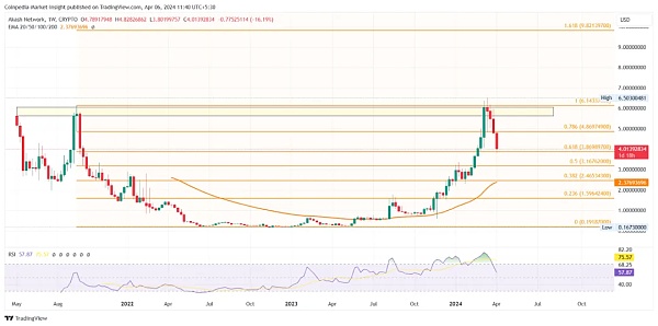 随着周线图上出现大规模的圆底反转,AKT 价格趋势挑战 6.50 美元的供应区域。然而,随着最近的供应浪潮,山寨币重新测试 61.80% 斐波那契水平至 3.86 美元。