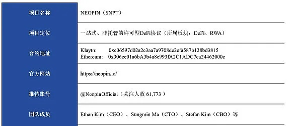 NEOPIN成立于2021年,其自我介绍为“一站式、非托管的许可型协议,旨在在监管框架下安全使用加密货币,并同时具备CeFi和DeFi的优势。基于稳定的安全协议和受监管的环境,NEOPIN旨在为用户构建传统金融与DeFi协议之间的桥梁。”