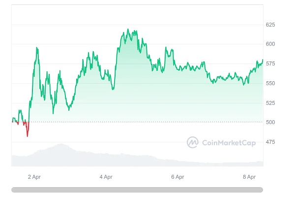 Bittensor 是一种开源协议,以其机器学习模型和算法的去中心化市场而闻名。该代币最近经历了 TAO 代币价格的飙升。它在短短两个月内飙升了 700%,推动 TAO 代币达到 759 美元的历史新高。