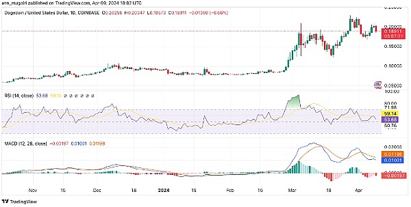 交易量激增 28.13% 至 17.9 亿美元,表明交易活动激增。尽管最近有所下跌,狗狗币仍然是一种受欢迎的数字资产,按市值计算在加密货币中排名第八。