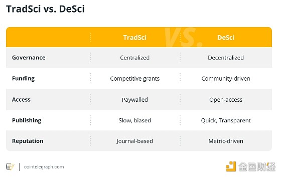 传统科学遵循中心化的方法,主要出版商和机构对研究拥有不成比例的控制权。 这导致了几个缺点。 由于竞争和资金匮乏,创新往往会放缓。