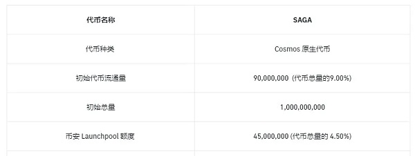 官方代币 $SAGA 总量为10亿,初始流通量为9%,其中有4500万分配给了币安的Lanchpool,支持BNB和FDUSD挖矿。