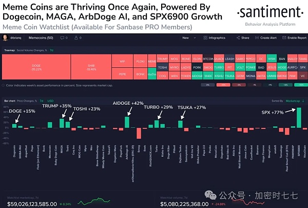 根据链上数据提供商 Santiment 的见解,比特币重新站上 70,000 美元大关的同时,迷因币也持续上涨,这表明交易者之间的利润重新分配。尽管人们对模因币在加密货币领域的作用存在不同看法,但最近几天模因币的表现优于其他类别的山寨币。