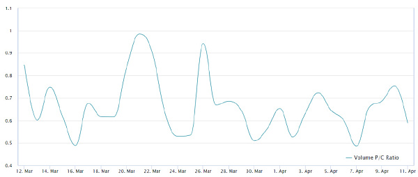 过去几周的数据显示,看跌期权的增长速度一直落后于看涨期权,平均交易量差距高达 35%。这表明针对价格下跌的保护需求较低,考虑到比特币在 4 月初多次测试 64,500 美元的支撑位,这是一个有趣的趋势。