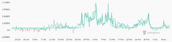 数据显示,3 月 31 日,资金费率达到每八小时 0.07% 的显着峰值,相当于每周年化利率 1.5%。然而,该指标已经调整,当前周利率为 0.3%。这减轻了交易者使用杠杆多头头寸的压力,标志着市场动态更加公平,并为潜在的看涨势头奠定了基础。