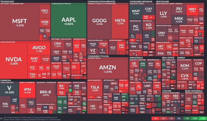 道琼工业指数暴跌475.84 点,或1.24%,收在37983.24 点。