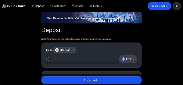 链接钱包,随后进行填写您想要跨链的ETH数量即可。