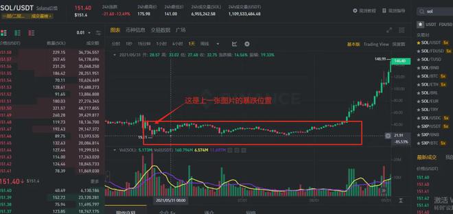 在上一轮的市场中,sol当时也是个山寨币,在他创造了10倍涨幅时候(前期大规模的资金疯狂聚集做多),市场也经历了震荡,如图: