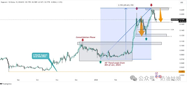 随着加密货币市场势头强劲,人们的注意力再次转向模因币,其中狗狗币(DOGE)引领潮流。尽管此前对其可行性存有疑虑,但 DOGE 正显示出强劲复苏的迹象,让人想起过去的牛市。持观望态度的投资者正在关注潜在的突破性反弹,预计价格将迅速突破 0.20 美元大关。