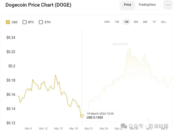在过去的一个月里,狗狗币表现出了一些令人兴奋的走势,其价格呈之字形波动,但总体呈看涨轨迹。根据 Coinstats 的数据,本月开始,狗狗币的交易价格为 0.16 美元,但不久之后,看跌收购将价格推低至 0.1255 美元的低点。然而,这种低迷是短暂的,因为看涨势头重新增强,推动价格升至 0.2244 美元的月度峰值。