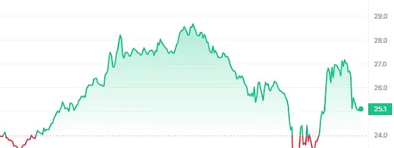 AR当前价格为25.39美元,近24小时上涨5.87%。尽管 RSI 为 41.65 的中性,表明潜在的横盘交易,但其价格在过去一年中大幅上涨了 178%。它保持较高的流动性,成交量与市值的比率为0.3012,增强了投资者的信心。交投于 200 日移动平均线上方反映了积极的市场情绪和稳定。