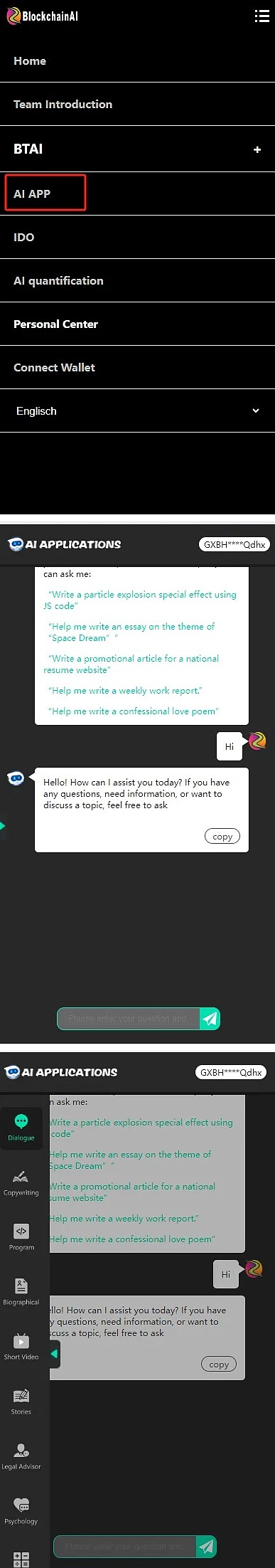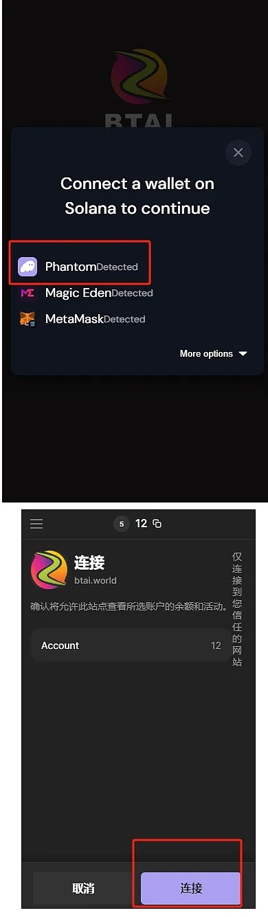 BTAI 具有增强的智能和灵活性,不仅能处理文本信息,还能处理图像、音频和视频内容,并相应地生成相关的图像、音频或视频材料。BTAI在算力模型的运算下可以平衡所有算力,不管是POW机制还是POS机制或者其它机制都可以最有效的最大化的利用算力。BTAI 代币空杸领取方式BTAI 是一个溯源AI模型代币。主要应用在 BTAI 模型中的各种消耗应用。第一批代币支持Solana链。后面即将开通SUI/ETH/Cosmos等等公链。空杸领取方式分为两种:第一:在BTAI官方网站绑定SOL地址领取积分去做应用投喂训练。消耗积分越多获得空杸越多。第二:在BTAI官方推特留言关注并留下自己的SOL地址将会获得BTAI代币空杸。BATI 官方XBTAI积分领取操作流程第一步:在solana钱包(建议使用OKEX/Metamask/Phantom/太阳耀斑)内打开网址第二步:点击菜单如下图
