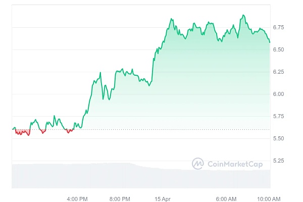 这导致对其服务的需求激增,并随后导致其代币价值增加。据 CoinMarketCap 报道,过去一个月,Pendle 的代币价格经历了上涨趋势,从 3.08 美元上涨至 6.20 美元。在此期间,这一飙升已将其市值推至 14.8 亿美元。