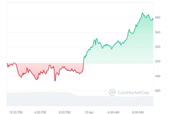 这一飙升推动 BCH 于 4 月 6 日达到 713.33 美元的峰值,减半后涨幅高达 11.91%。此外,比特币现金增长显着,在过去三个月内超过了 100%。BCH目前价格为557.75美元,24小时交易量为17.3亿美元,过去24小时内上涨了13.48%。