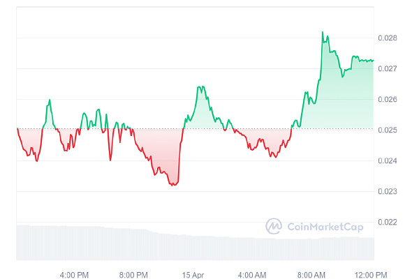 目前 CKB 价格为 0.02727 美元,盘中涨幅为 8.79%。根据 CoinMarketCap 数据,该代币的市值有所增加,在过去 24 小时内达到 12 亿美元,较前一交易日上涨 8.80%。