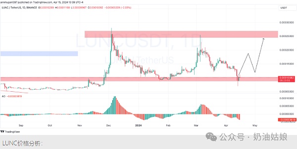如果市场看涨情绪加剧,Terra Classic 可能会突破 0.00011 美元的水平,重新点燃其上涨轨迹。这一积极转变可能使 LUNC 接近并突破 0.00015 美元的阻力位,并有望在比特币减半事件后达到 0.002 美元的高位。