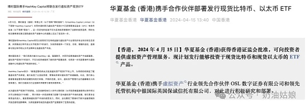 今天下午,博时国际、华夏基金(香港)、嘉实国际先后发文称,发行虚拟资产现货 ETF 产品已获得香港证监会原则上批准;获准纳入后,发行的品种不仅包括比特币,也包括美国 SEC 尚未批出的以太坊。