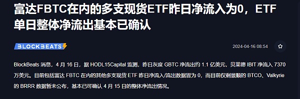 据此,基本已可确认4月15日的整体净流出情况。尽管流出情况存在,但市场整体保持稳定,投资者对加密货币市场的信心依然坚定。