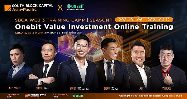 此次的训练营只公开给ONEBIT价值投资俱乐部的会员参与,这是俱乐部给予会员的价值承诺与回馈。ONEBIT与南区资本亚太区(South Block Capital - Asia Pacific, SBCA)期待与所有参与者共同探索Web3.0的未来,通过知识教育的传播实现共同成长,迎接这个充满机遇的新时代。