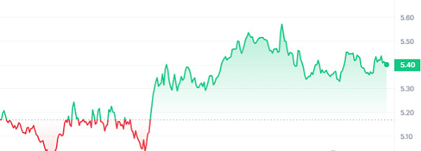 NEAR Protocol 价格为 5.45 美元,近 24 小时上涨 5.66%。过去一年,其价格上涨了 132%,反映了其增长轨迹。 NEAR 交易价格显着高于 200 日移动平均线 238.73%,显示出强劲的看涨势头。然而,由于 14 天 RSI 为 40.43,该加密货币显得中性,可能会横盘整理。尽管如此,过去 30 个交易日中有 43% 的交易日是积极的。此外,NEAR 波动性较低,30 天波动率为 9%,流动性较高,成交量与市值比率为 0.2202。