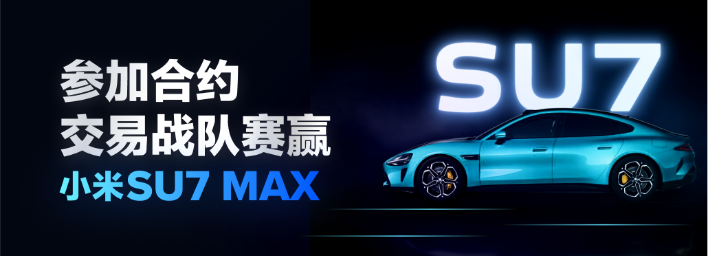 5、若某单支队伍的交易量达到10,000,000,000U,则该战队将额外获得由3EX赠送的小米SU7 Max轿跑!具体领取方式可联系平台客服。