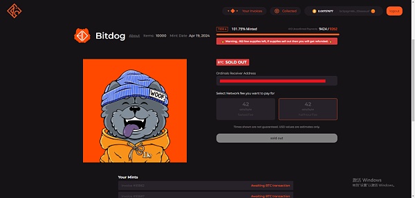 Bitdogs NFT递归铭文的发售于4月17日开始,首先对白名单用户开放mint,至4月18日中午结束,1万枚bitdogs中剩余不到1500个。随后,公售在不到2小时内售罄,显示出市场对此项目的极大热情。据推特最新公告,bitdogs将于4月18日晚上在Magic Eden和OKX平台同时上市,这将是比特币NFT市场的一个重要里程碑。