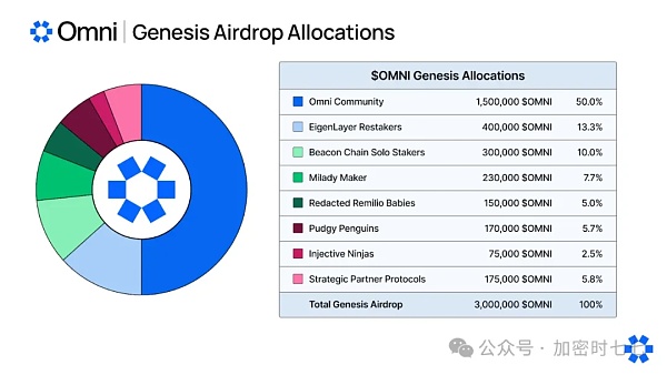 第一层网络Omni Network的代币于 4 月 17 日 14:00 上线,空投活动期间向符合条件的用户发放了 300 万枚 OMNI,相当于代币总供应量 1 亿枚的 3%。空投活动期间,OMNI 市值为 5.6 亿美元。