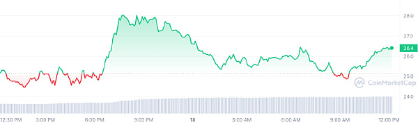 这些合作伙伴关系激起了 $INJ 的兴奋,导致价值增长了 5.33%。Injective目前交易价格为26.41美元,24小时交易量为7.0075亿美元。与此同时,情绪分析表明前景看涨,这意味着上升趋势可能会持续。因此,Greed 得分飙升至 81,表明购买压力增加。