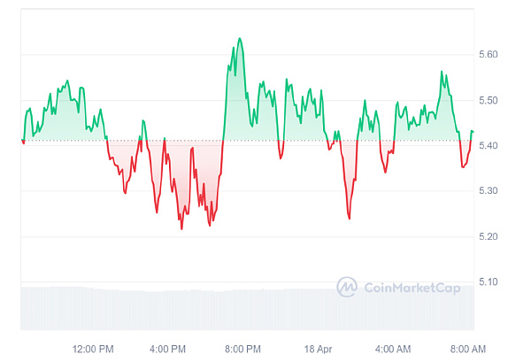 此外,NEAR Protocol 价格在过去 24 小时内的飙升恰逢人们对该项目重新产生兴趣。截至撰写本文时,NEAR 交易价格为 5.43 美元,盘中小幅上涨 0.36%。然而,本周小幅下跌 3.74%。尽管遇到了这一挫折,但其整体性能展示了 Web3 生态系统的弹性和潜力。