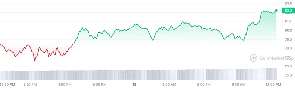 Coinbase 计划推出莱特币、狗狗币和比特币现金的现金结算期货合约。这一举措旨在提高 Coinbase 的全球扩张能力。这一消息推高了 LTC 的价格,表明市场接受度较高。在连续 19/30 天以绿色烛台收盘后,莱特币今天进入了热门代币之列。随着近24小时的成功出局,LTC暴涨4.72%,达到82.18美元。这一积极势头也推动其市值上涨 3.57%,达到 6,681,602,967 美元。
