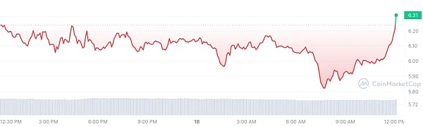 此外,RSI 的上升趋势和 6.13 美元支撑位的金叉强化了看涨情绪。这种 RSI 鼓励乐观的投资者进入市场并购买代币,可能导致价格进一步上涨。